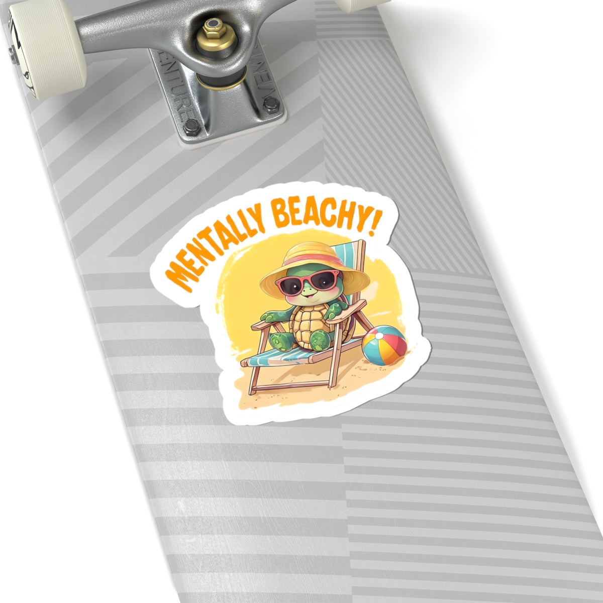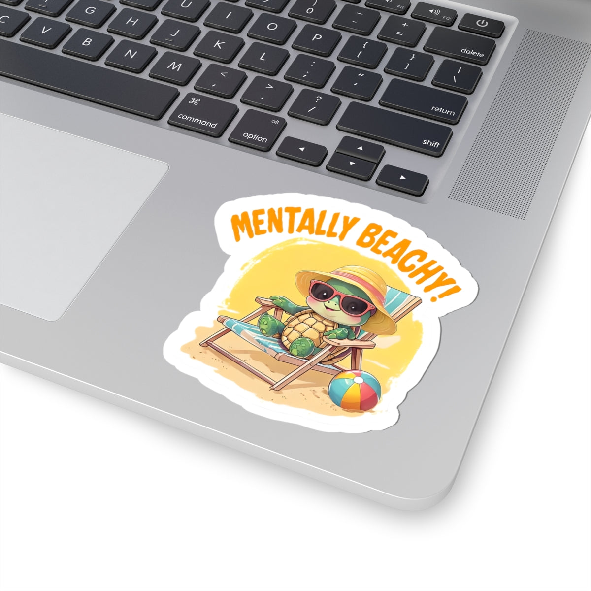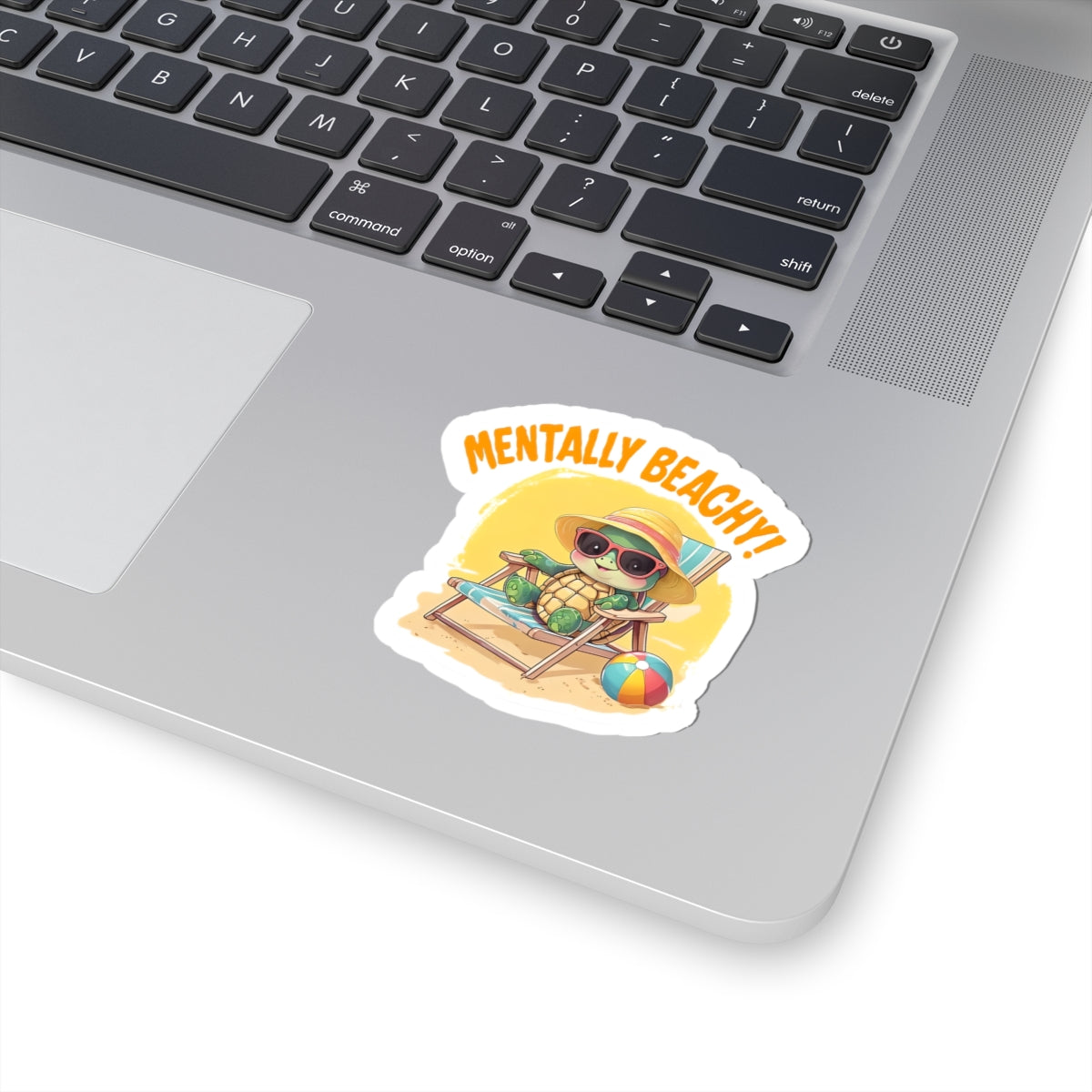 Adorable Mentally Beachy Turtle Sticker, Fun Beach Vibes, Summer Decor, Laptop Stickers, Gift for Beach Lovers, Cute Sea Turtle Art