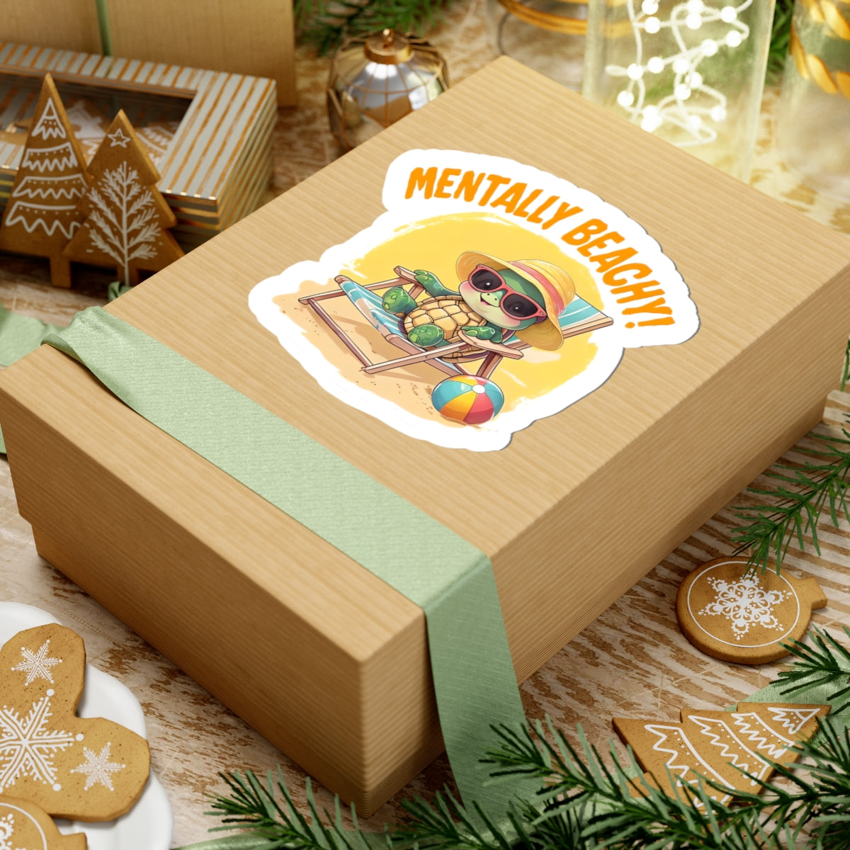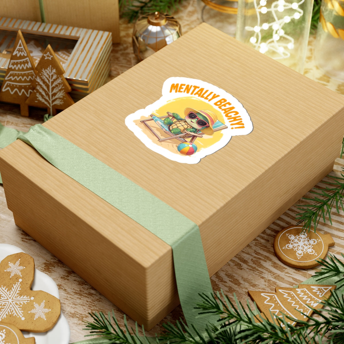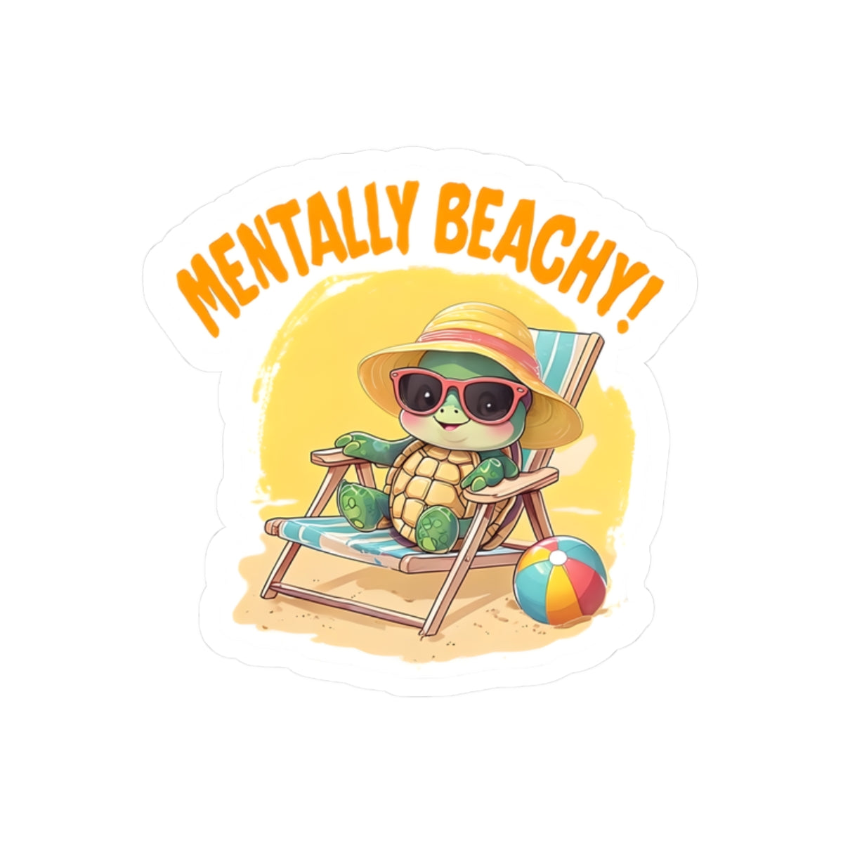 Adorable Mentally Beachy Turtle Sticker, Fun Beach Vibes, Summer Decor, Laptop Stickers, Gift for Beach Lovers, Cute Sea Turtle Art