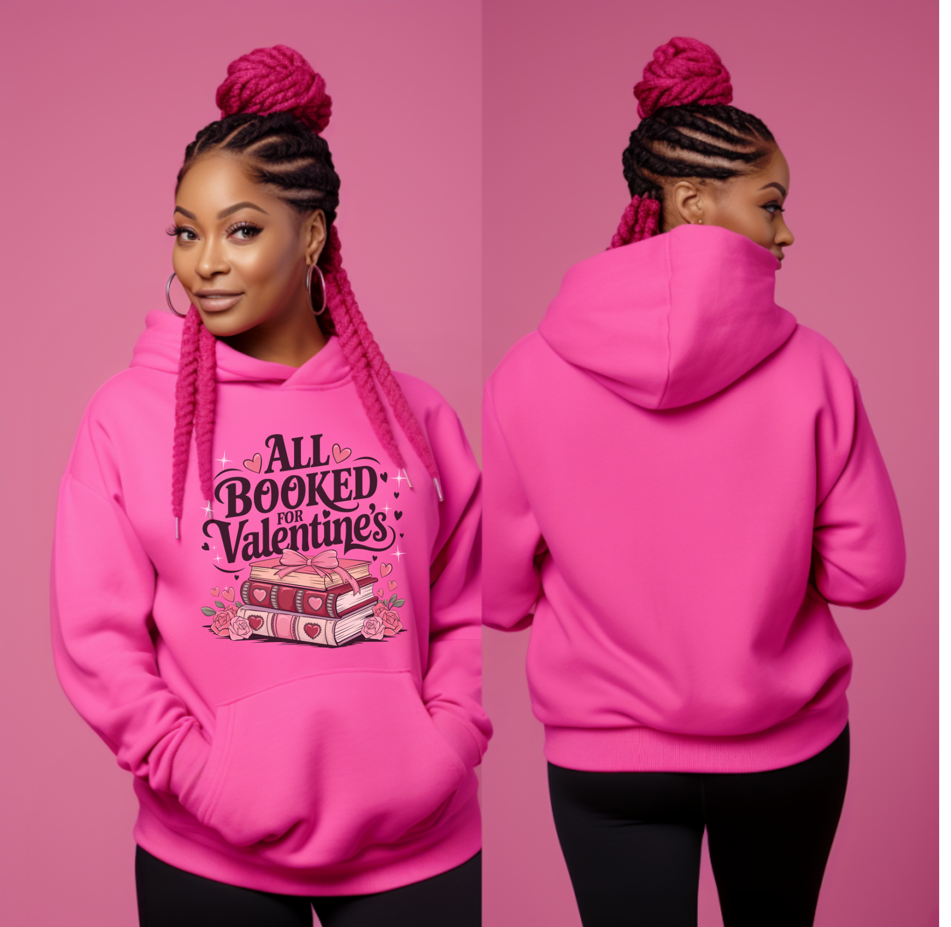 Snuggle up with a good book this Valentine's Day in our "All Booked for Valentine's" hoodie. This comfy and cozy hoodie is perfect for bibliophiles who prefer the company of captivating stories to traditional Valentine's festivities. Whether you're curled up on the couch or tucked away in your favorite reading spot, this hoodie promises warmth, comfort, and a little literary charm.