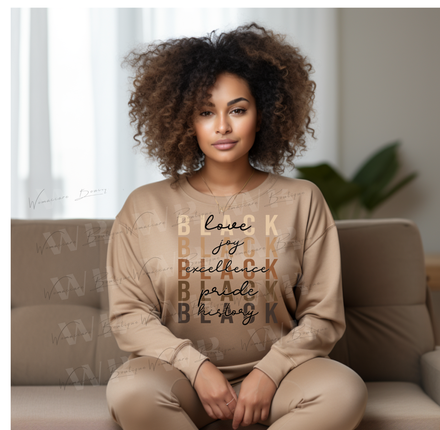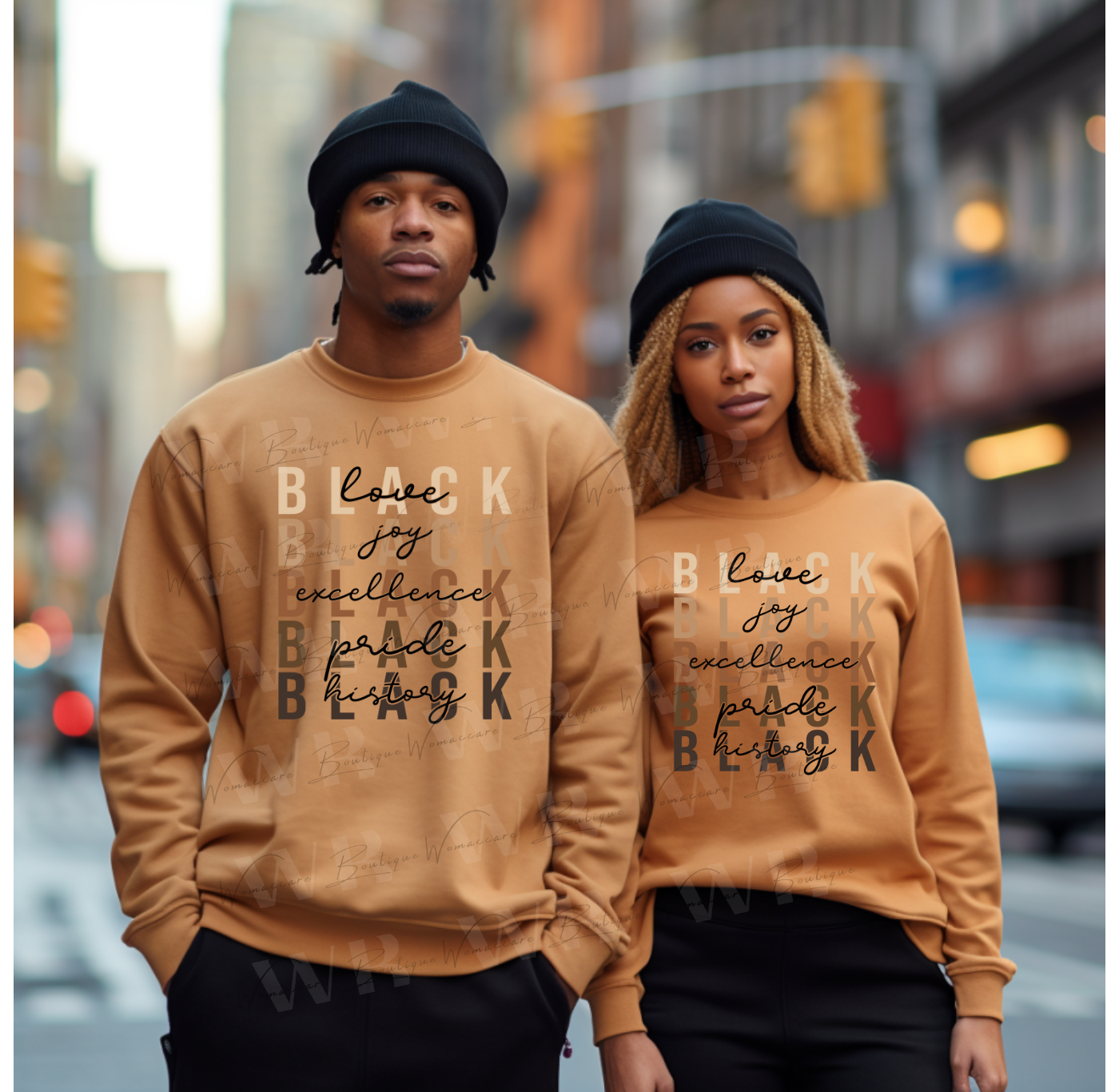 Black Excellence Crewneck Sweatshirt - Black Love, Black Joy, Black Pride, Black History