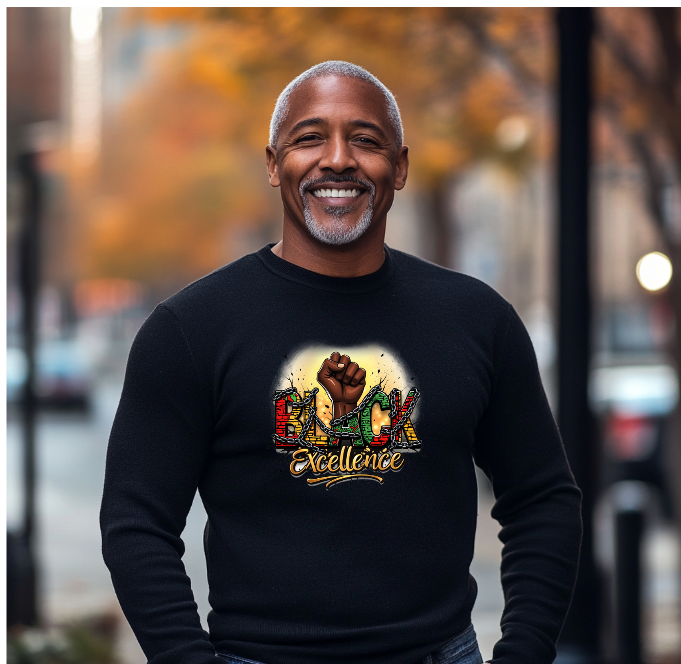 Showcase your pride and celebrate achievement with our "Black Excellence" T-shirt. This powerful tee is a tribute to the remarkable accomplishments and enduring spirit of the Black community. Perfect for cultural events, educational settings, or everyday wear, this T-shirt is a bold statement of pride and a celebration of excellence that resonates across generations.
