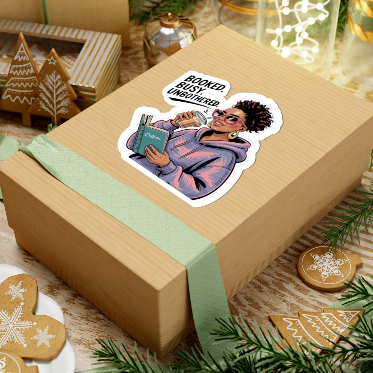 Busy Booked Unbothered Kiss-Cut Stickers, Planner Stickers, Scrapbooking Supplies, Laptop Decals, Coffee Lover Decor, Gift for Readers