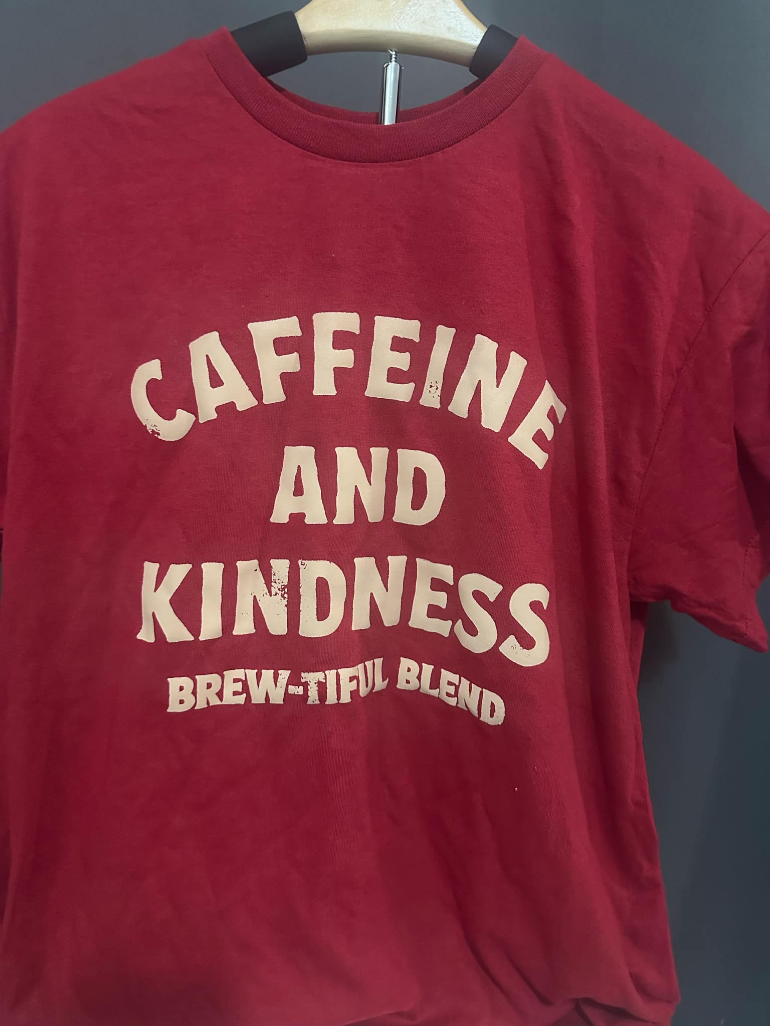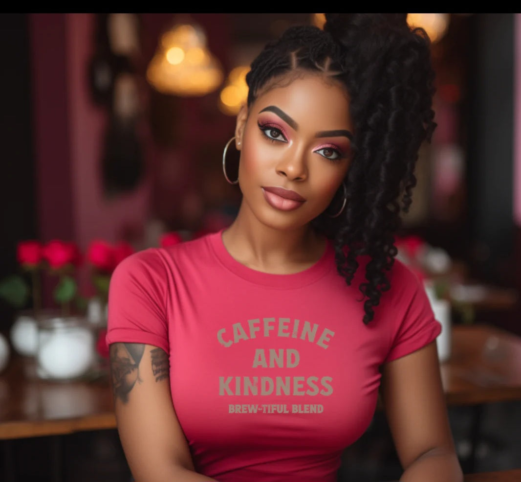 Fuel your day with our "Caffeine & Kindness" t-shirt. This delightful design blends your love for coffee with the warm vibes of spreading kindness wherever you go. Crafted from soft, durable cotton, it's the perfect pick for coffee lovers who lead with compassion. Whether you're grabbing a latte or helping a friend, this shirt keeps you comfy and inspired.