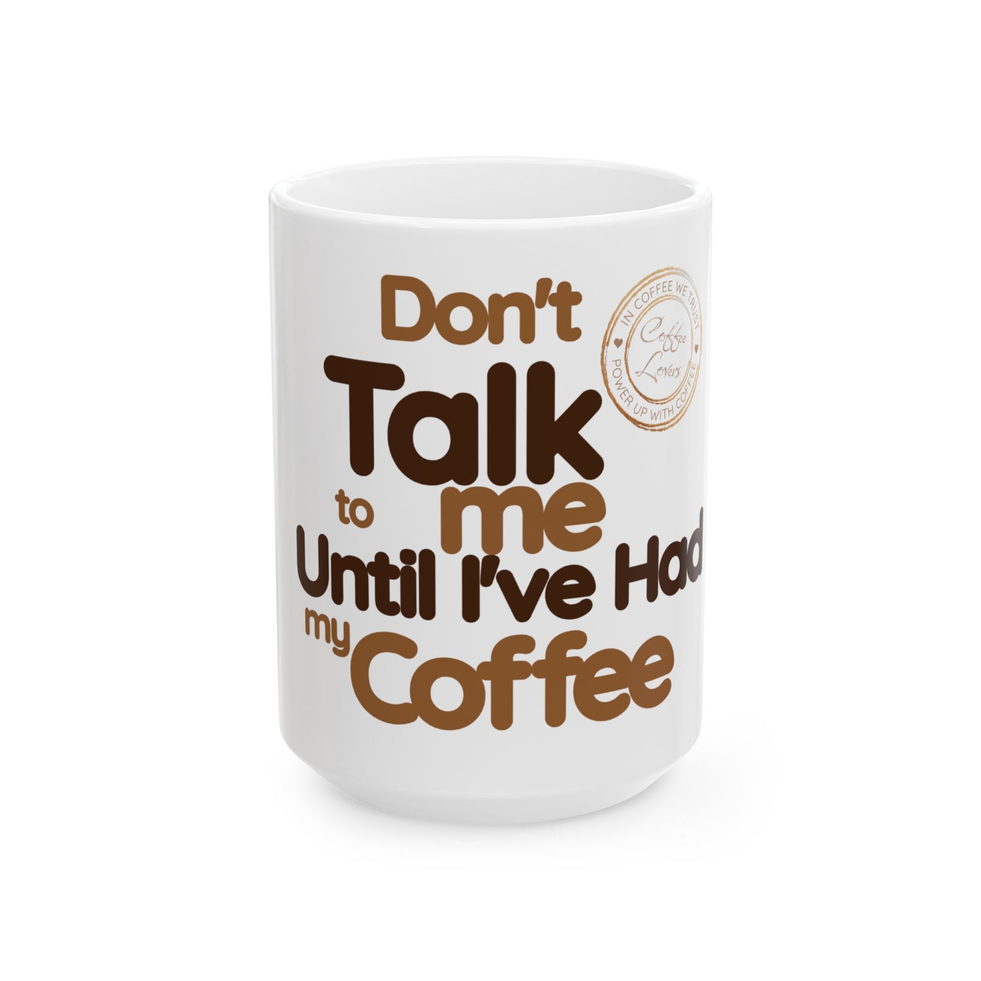 Coffee Lover's Ceramic Mug - "Don't Talk to Me Until I've Had My Coffee" - 11oz & 15oz Options