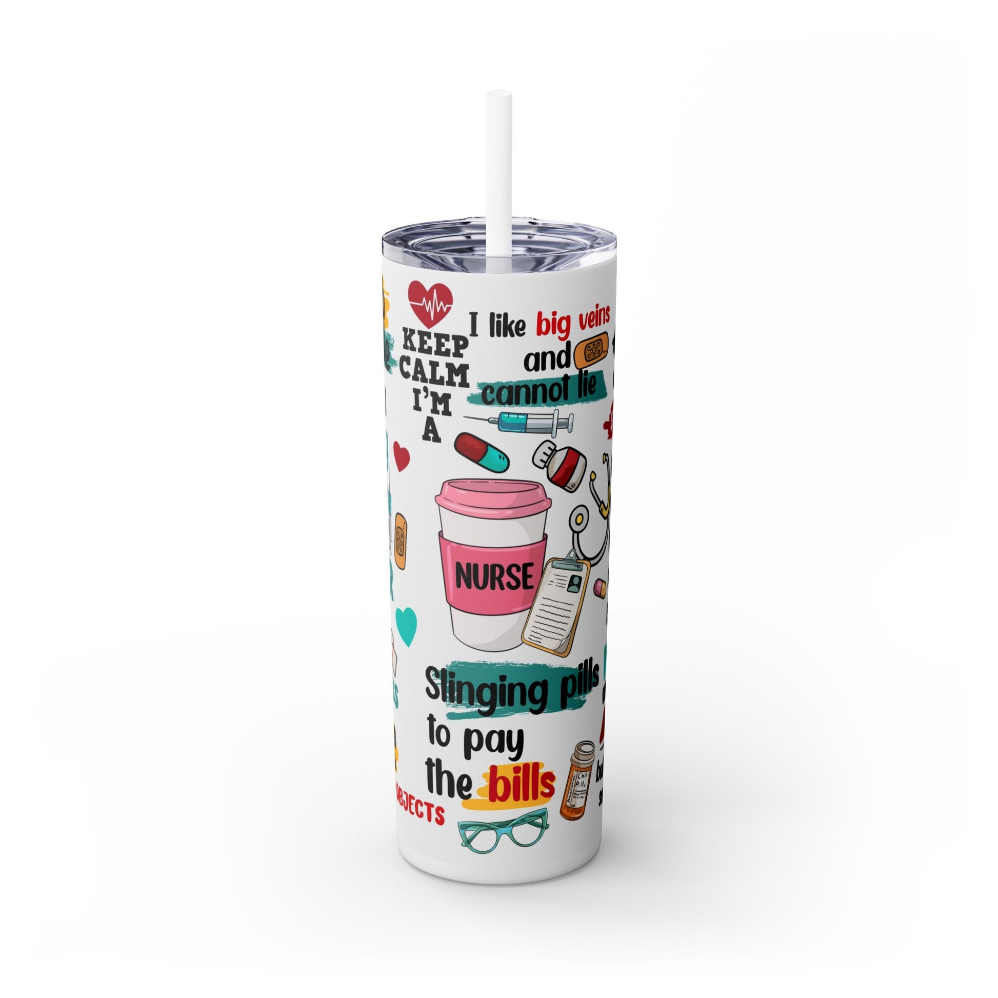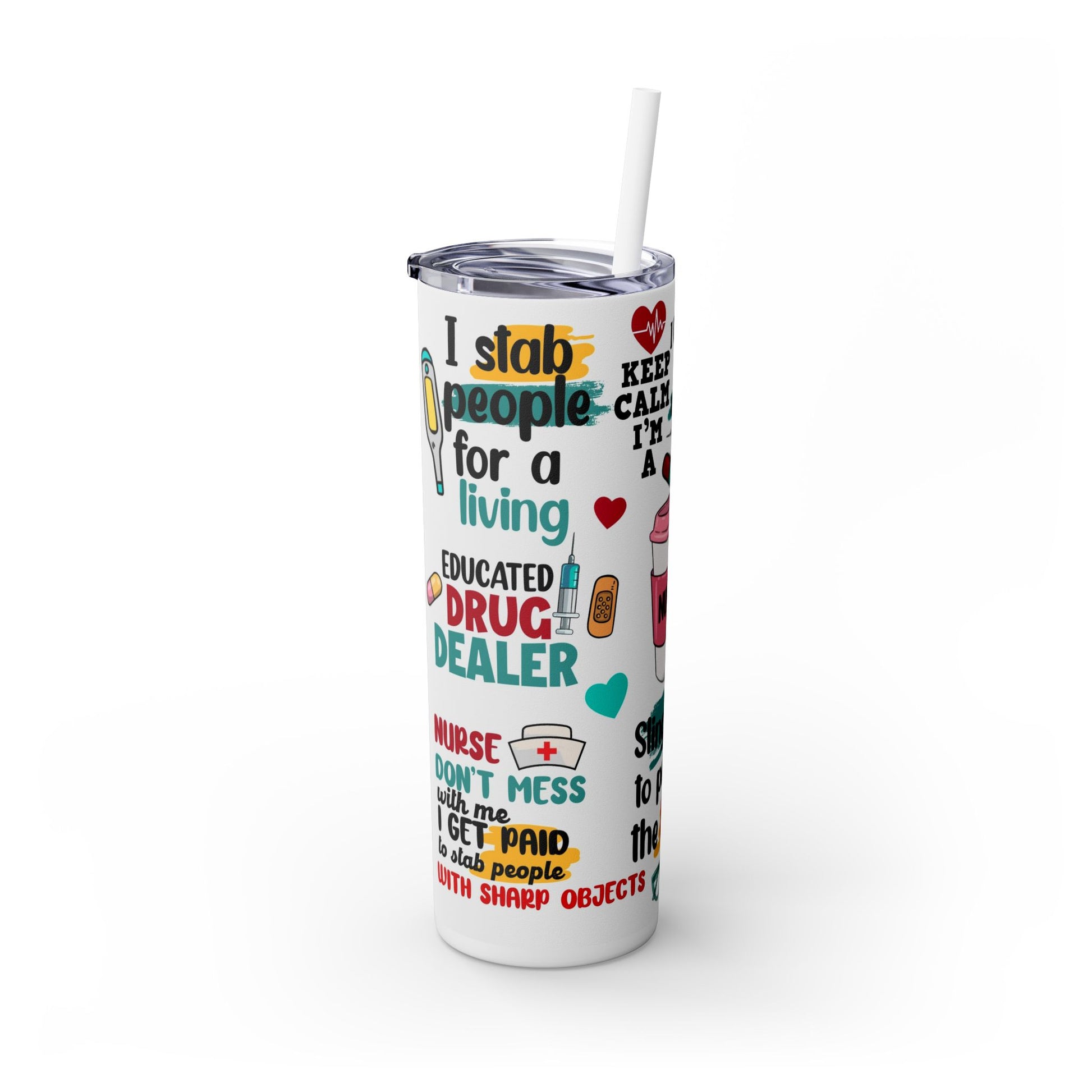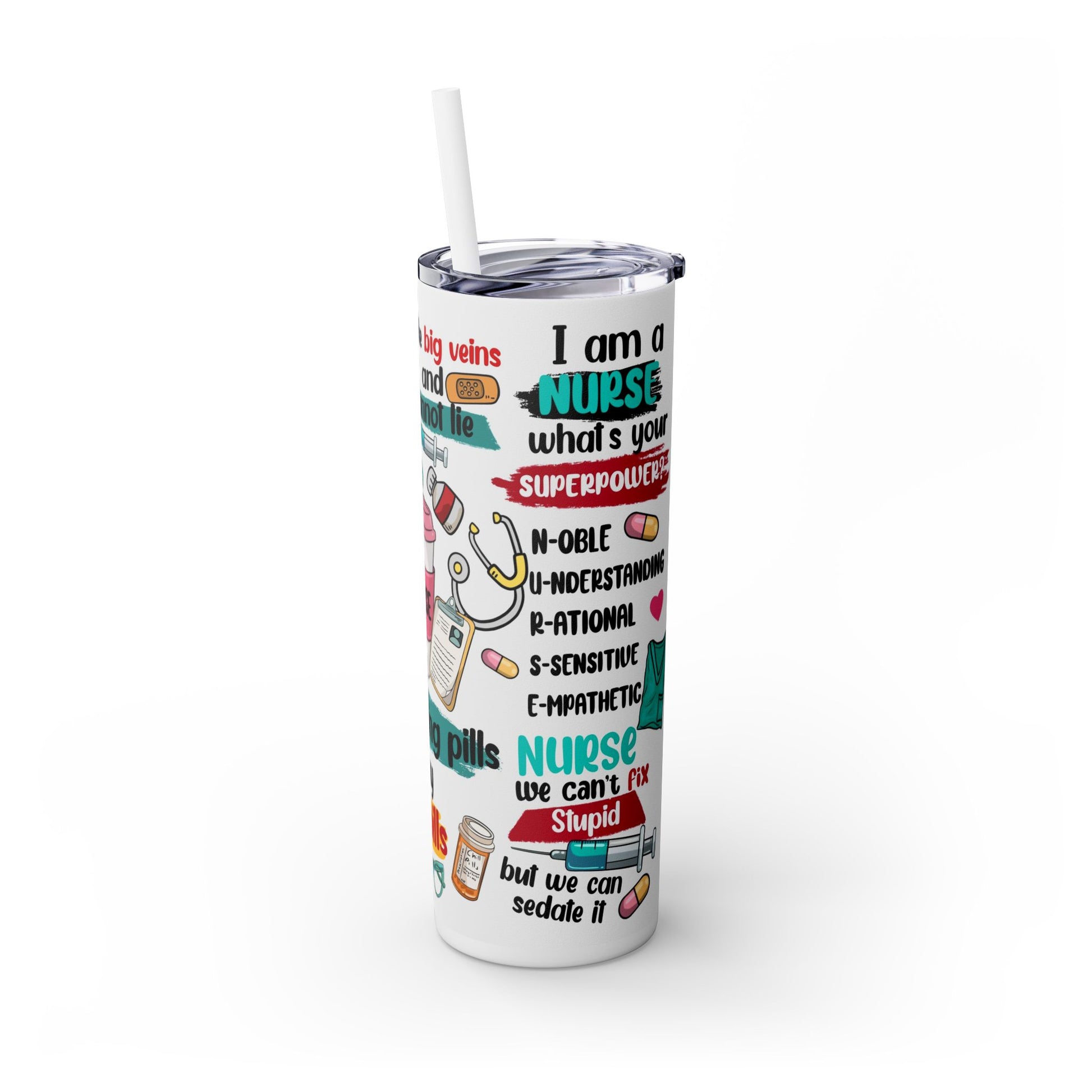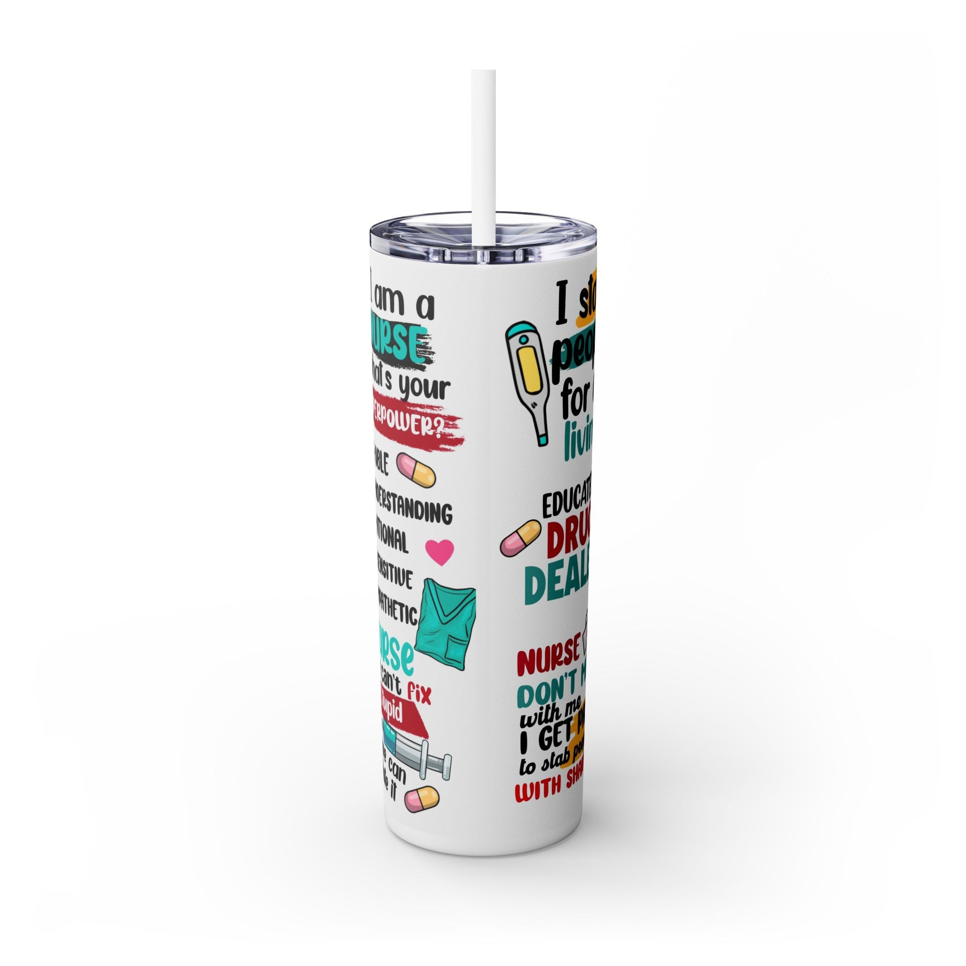 Funny Nurse Skinny Tumbler with Straw, 20oz