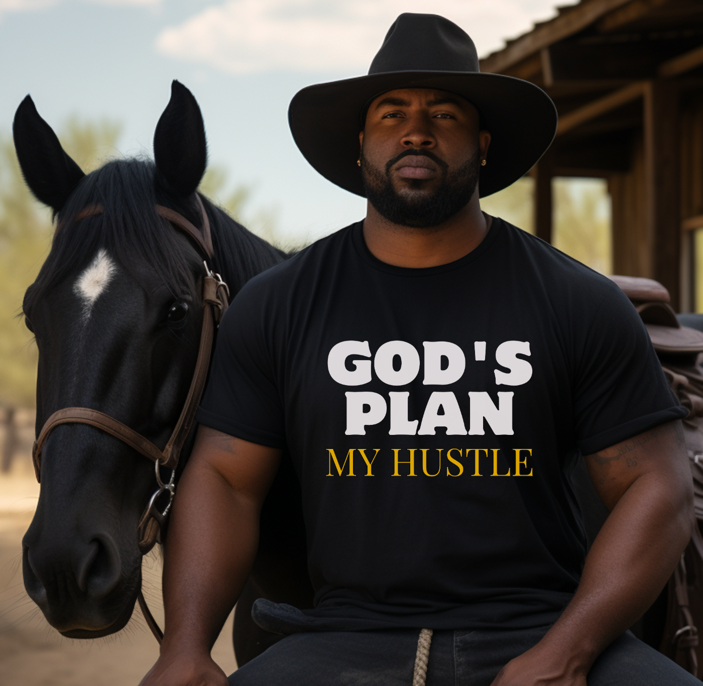 Fuel your journey with faith and determination with our "God's Plan, My Hustle" T-shirt. This motivational tee is perfect for anyone who believes in the power of combining spiritual guidance with personal effort. Whether you're pushing towards your career goals, embarking on new ventures, or simply striving to be your best self, this shirt reminds you that your hustle is part of a greater plan.