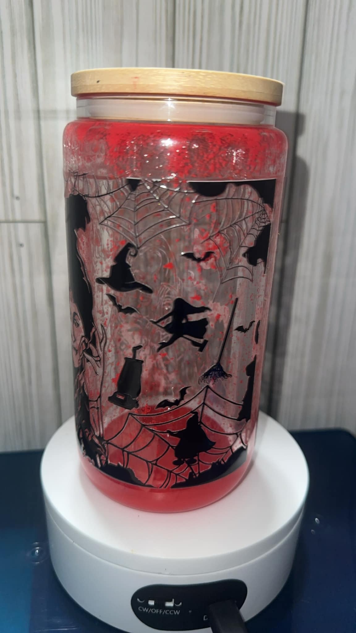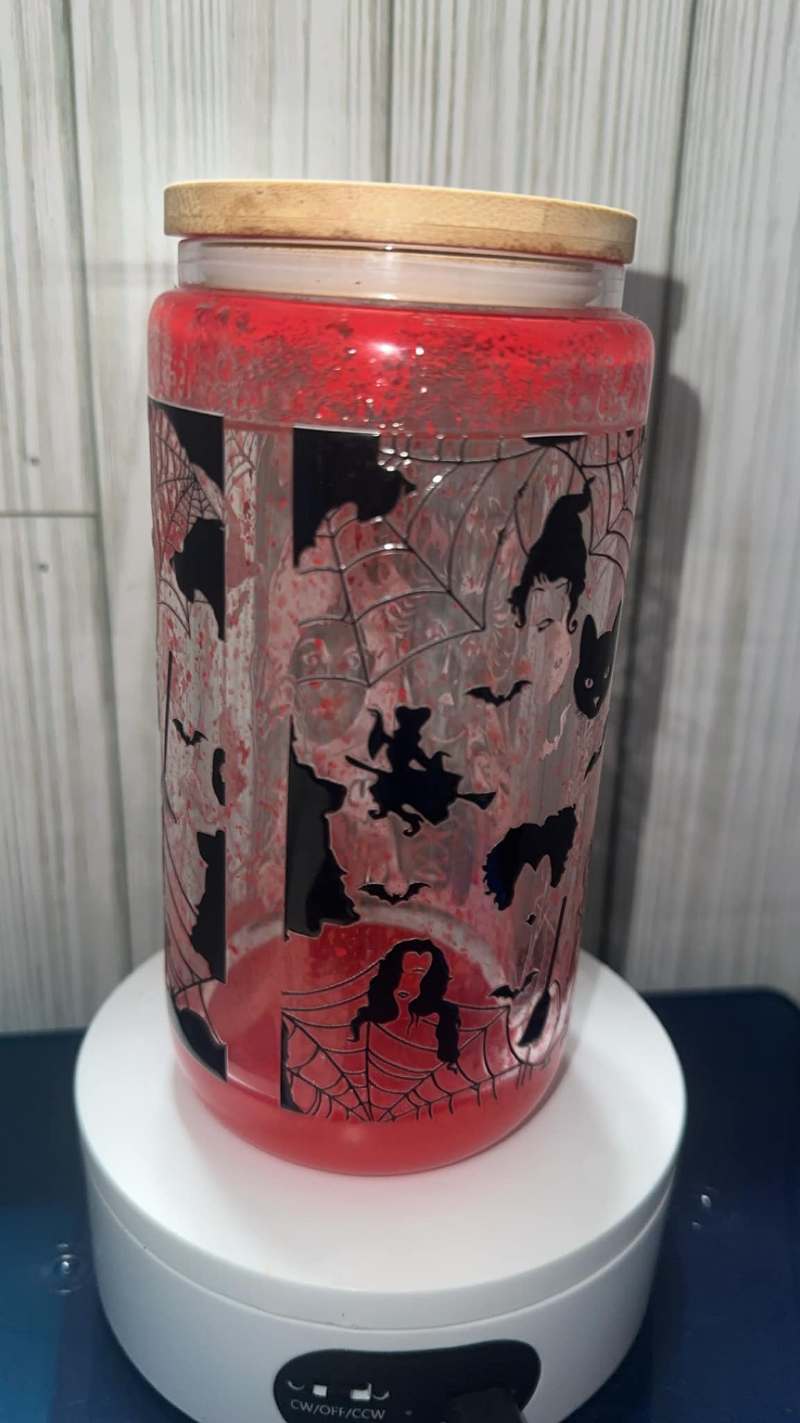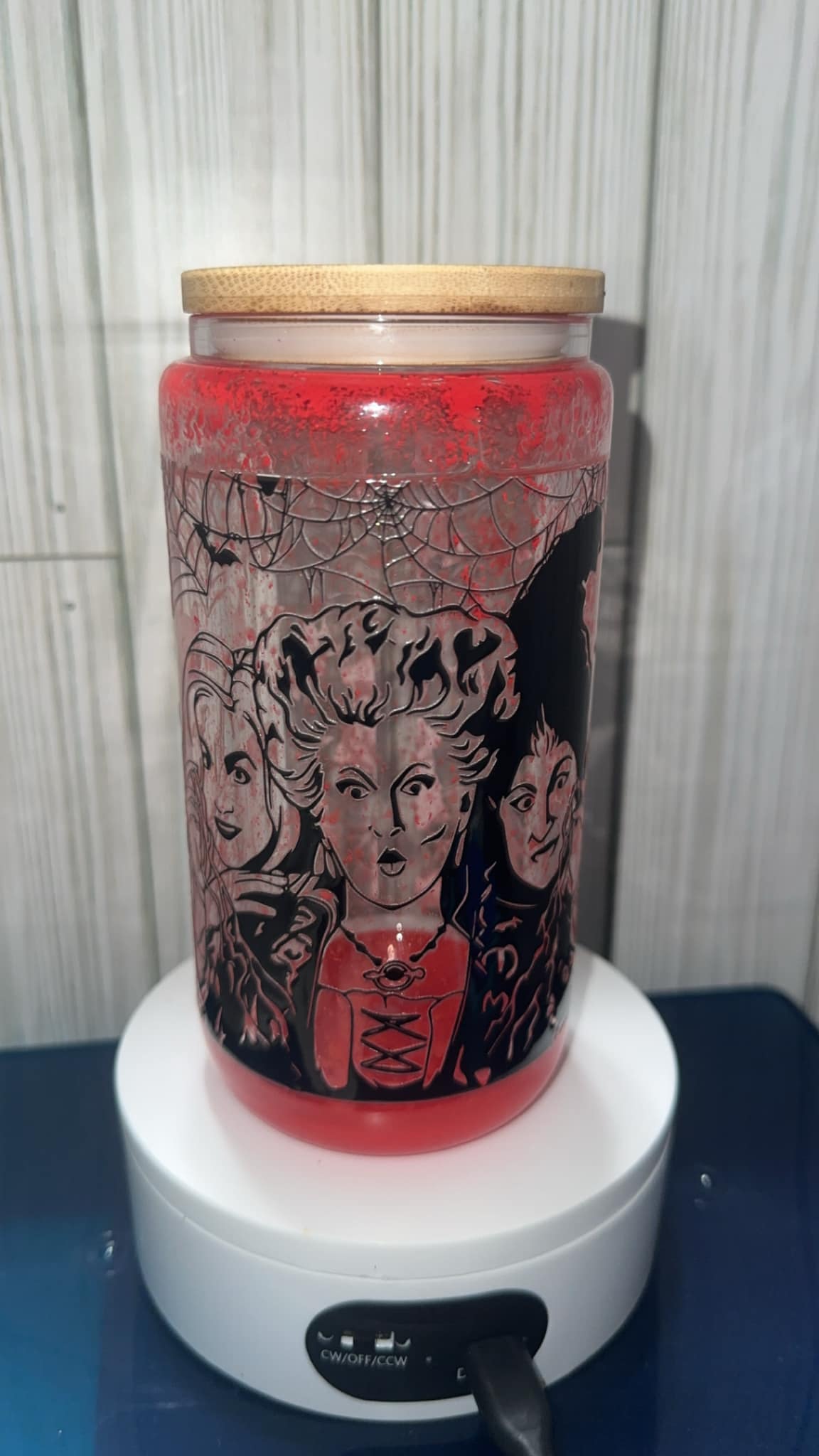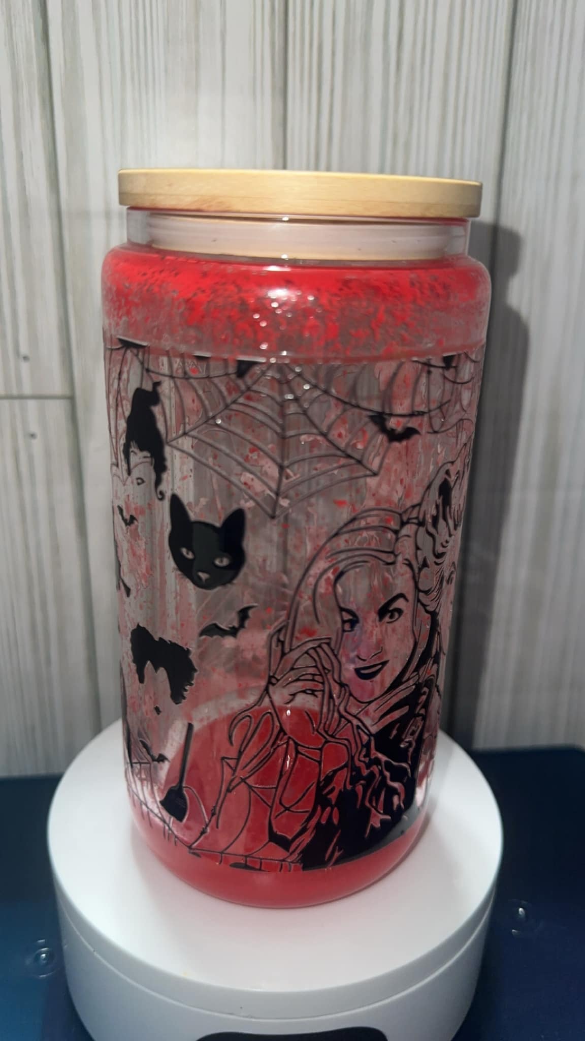 Hocus pocus bloody halloween snowglobe glass tumbler