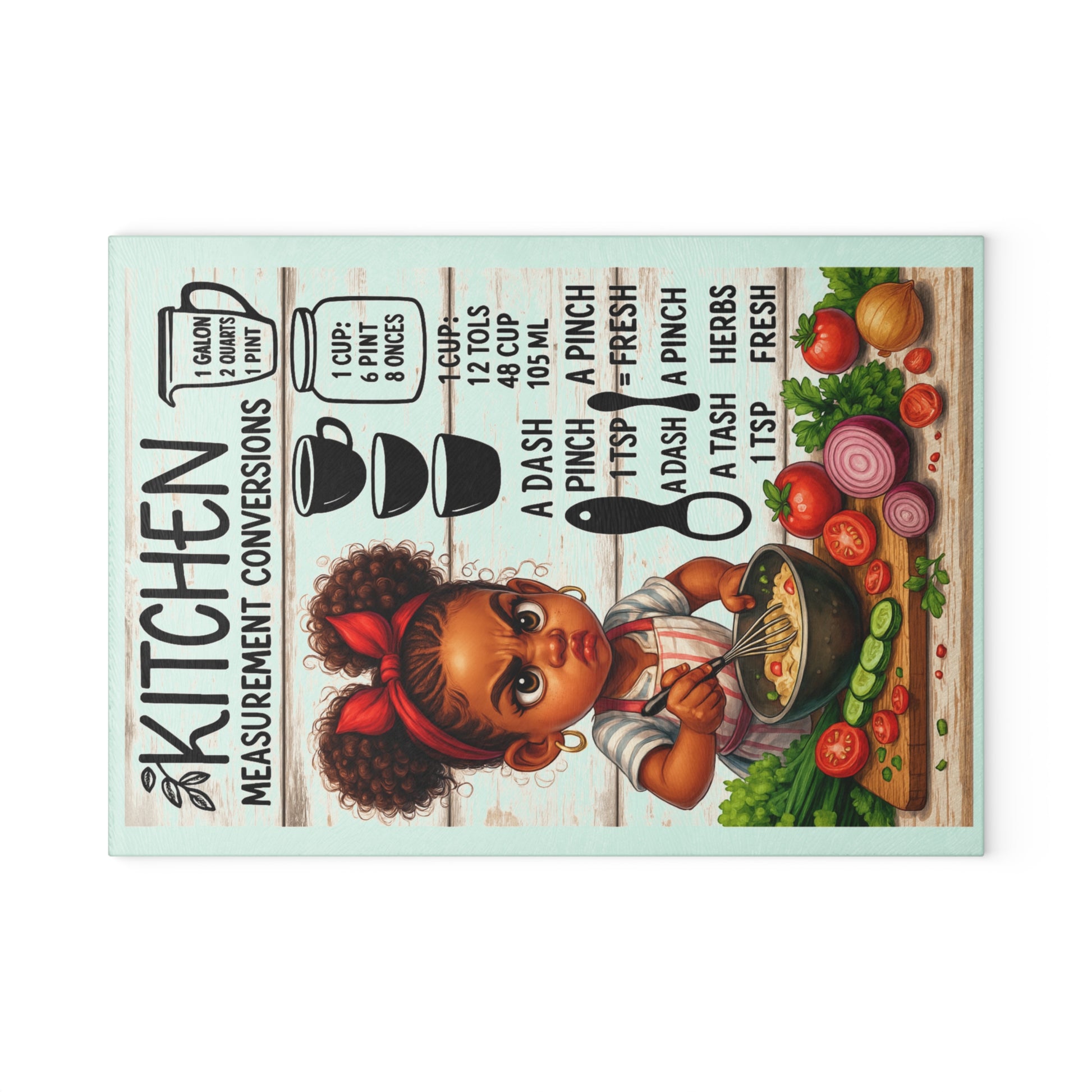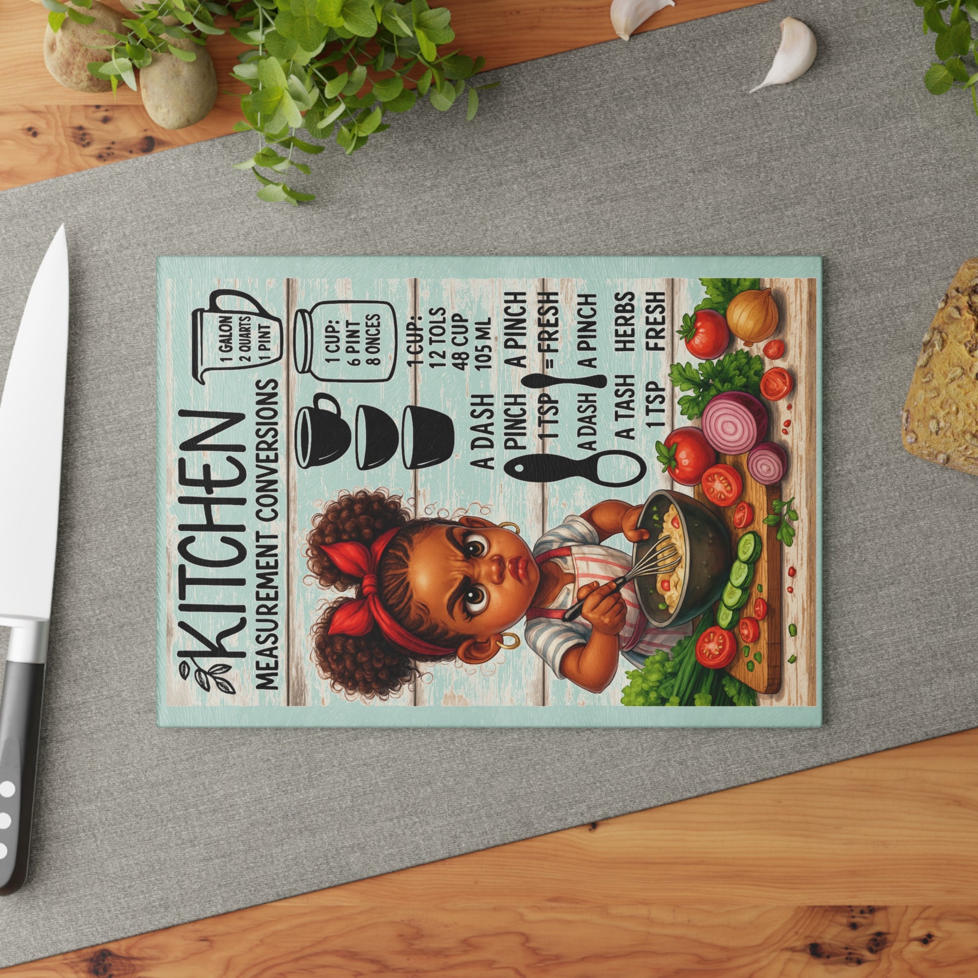 Kitchen Measurement Glass Cutting Board, Unique Gift for Cooking Lovers, Kitchen Decor, Culinary Conversion Board, Fun Cooking Accessory