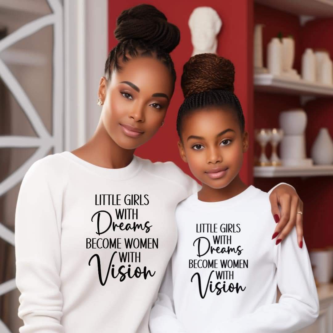 Dress alike, feel alike, and share the joy of your journey together with the "Little Girl Dreams: Mom and Mini T-shirt Set." It's more than just apparel—it's a symbol of love and shared dreams.