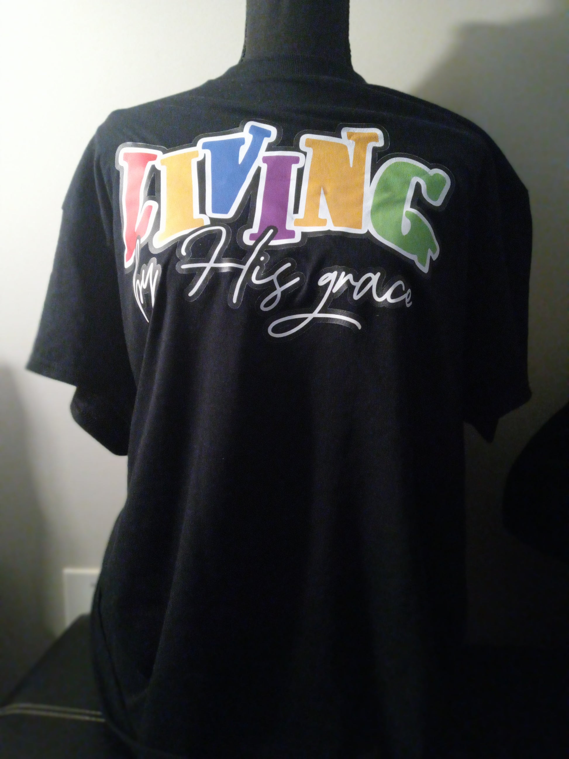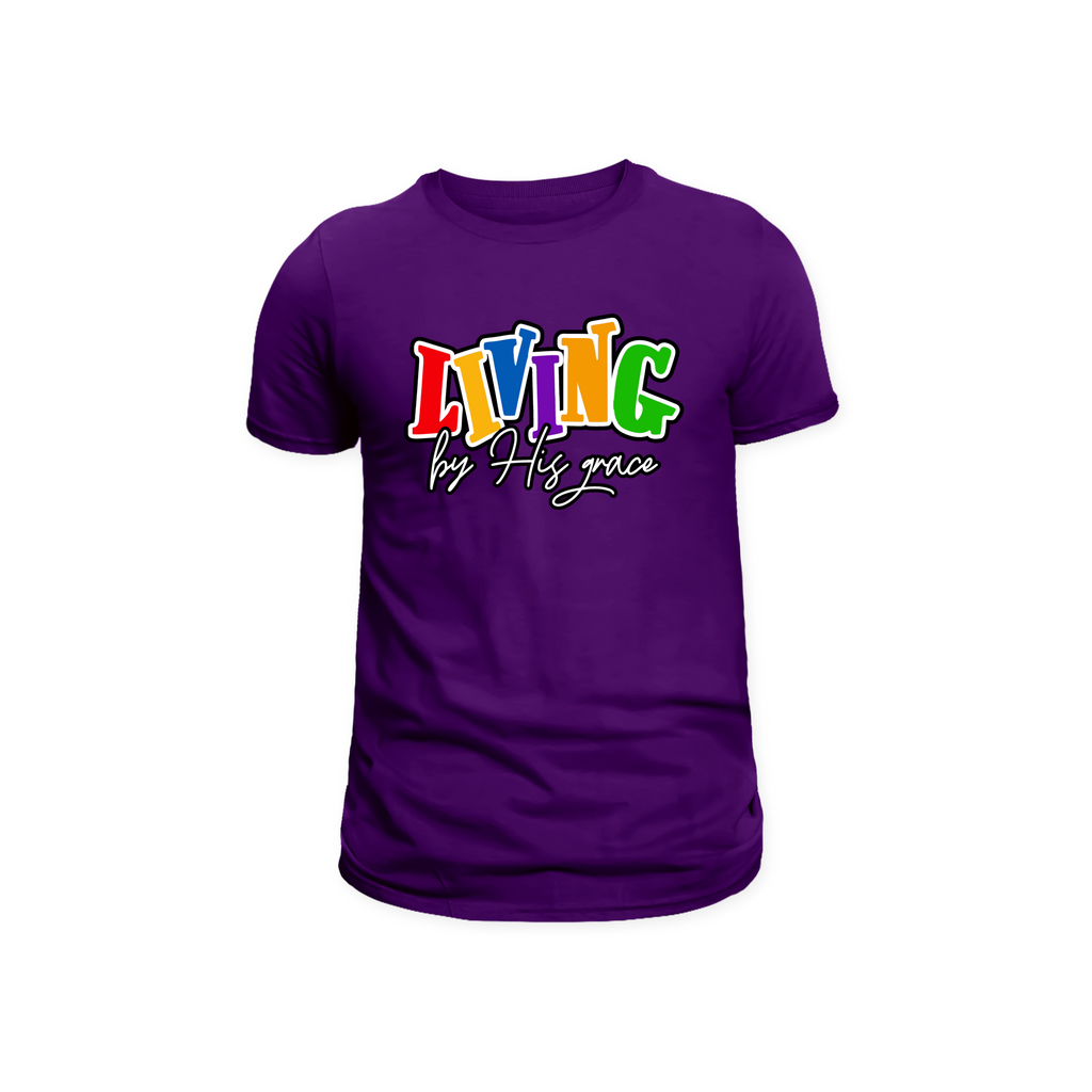 Embrace the uplifting power of faith and grace with our "Living in His Grace" T-Shirt. This stylish and meaningful garment is designed to remind you of the profound presence of grace in your life, wherever you may go.