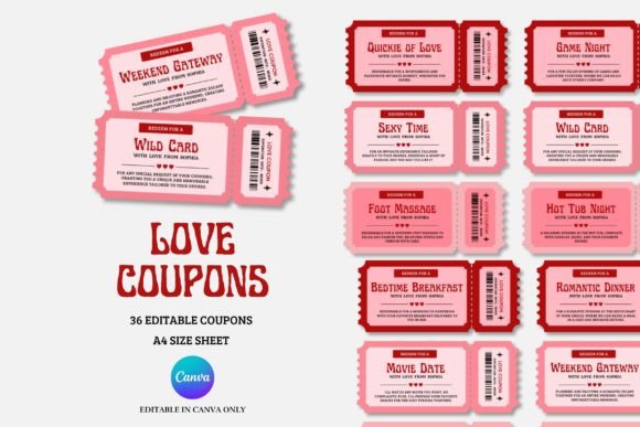- A link to your customizable templates in Canva, with 36 different love coupon designs.