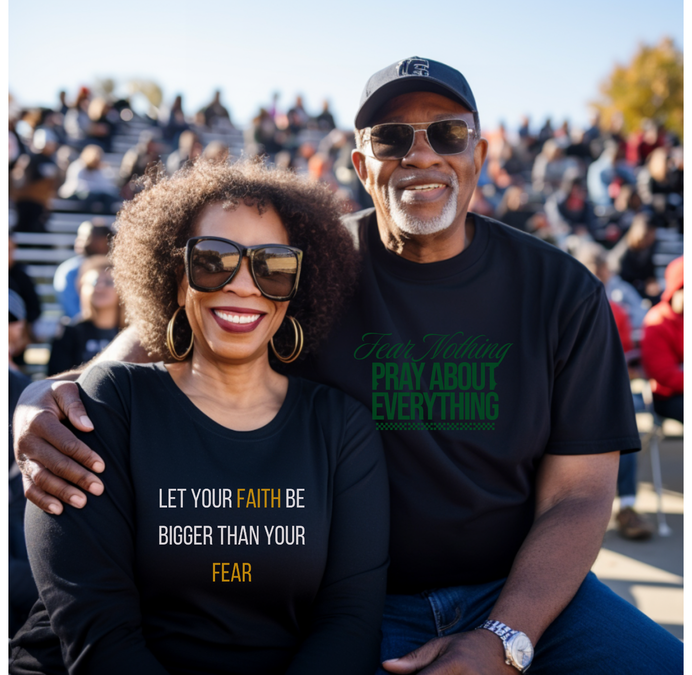 Anchor yourself in belief with our "Let Your Faith Be Bigger Than Your Fear" T-shirt. This profound tee is perfect for anyone who seeks to live a life guided by faith rather than overshadowed by fear. Ideal for community gatherings, spiritual events, or daily wear, this shirt serves as a beautiful reminder to trust in what you believe and face challenges with courage and conviction.