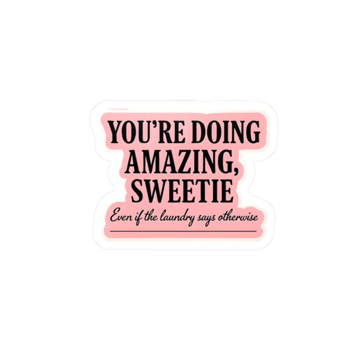 Motivational Kiss-Cut Stickers - "You're Doing Amazing, Sweetie" for Encouragement and Self-Love