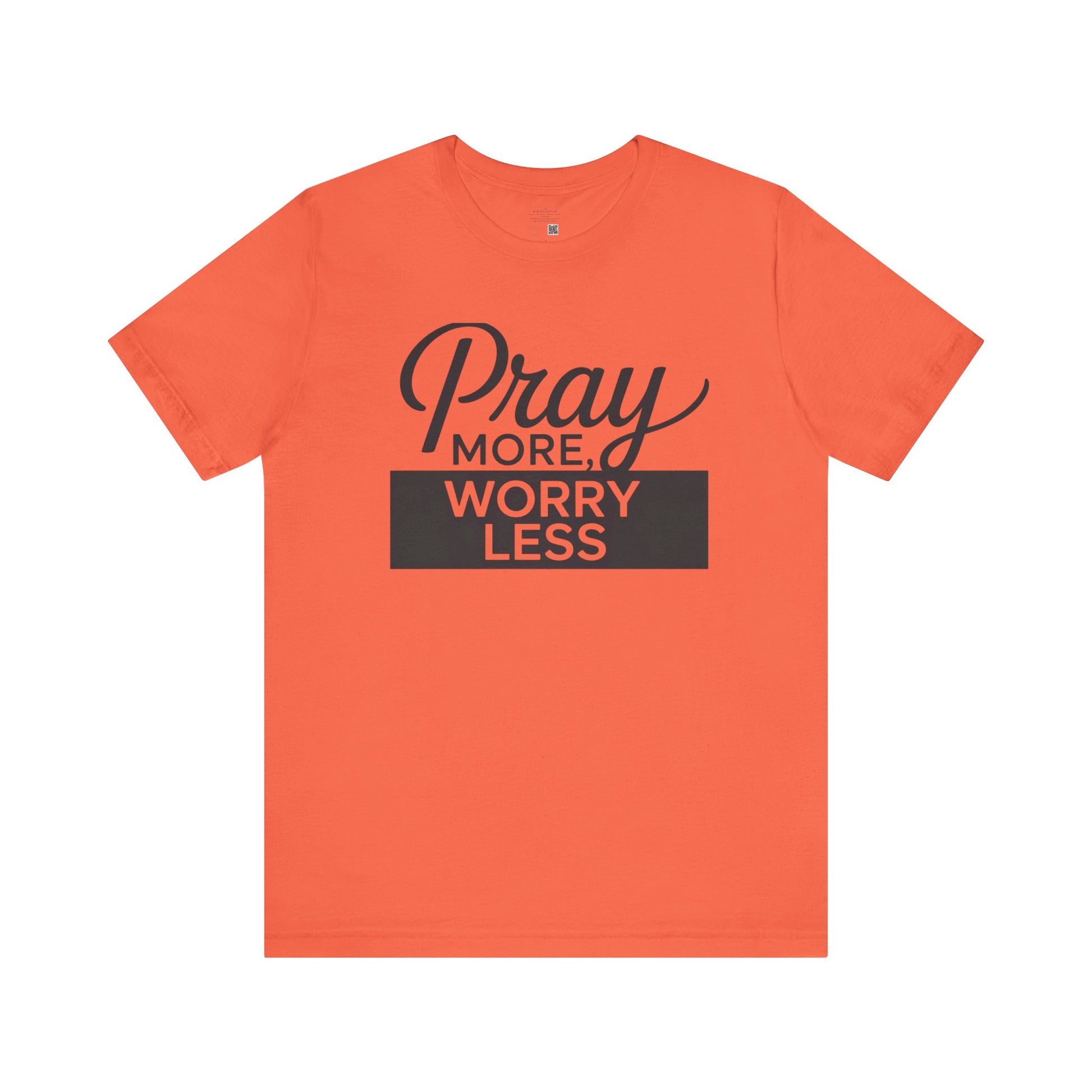 IEmbrace tranquility and faith with our "Pray More, Worry Less" T-shirt. This inspiring tee is perfect for anyone seeking to reduce stress through the power of prayer. Ideal for daily wear, spiritual gatherings, or as a comforting reminder during challenging times, this shirt advocates for a life lived with less worry and more faith.