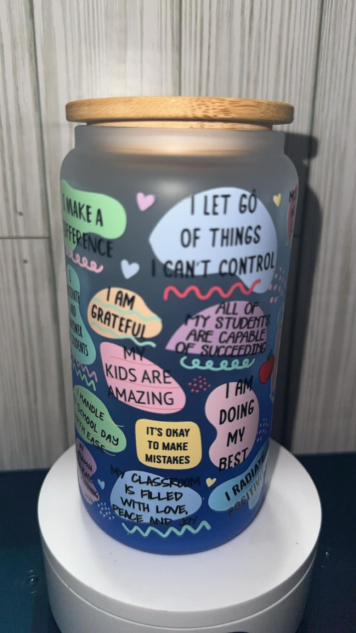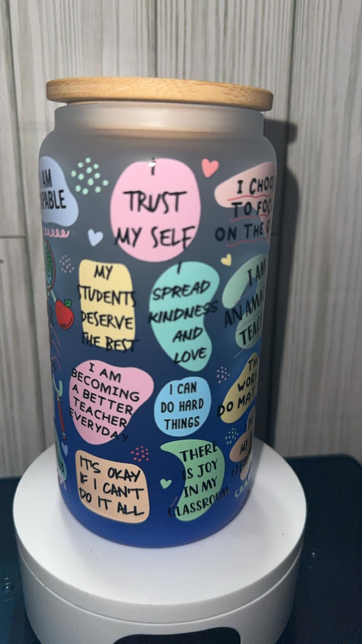 Teachers affirmations glass cup