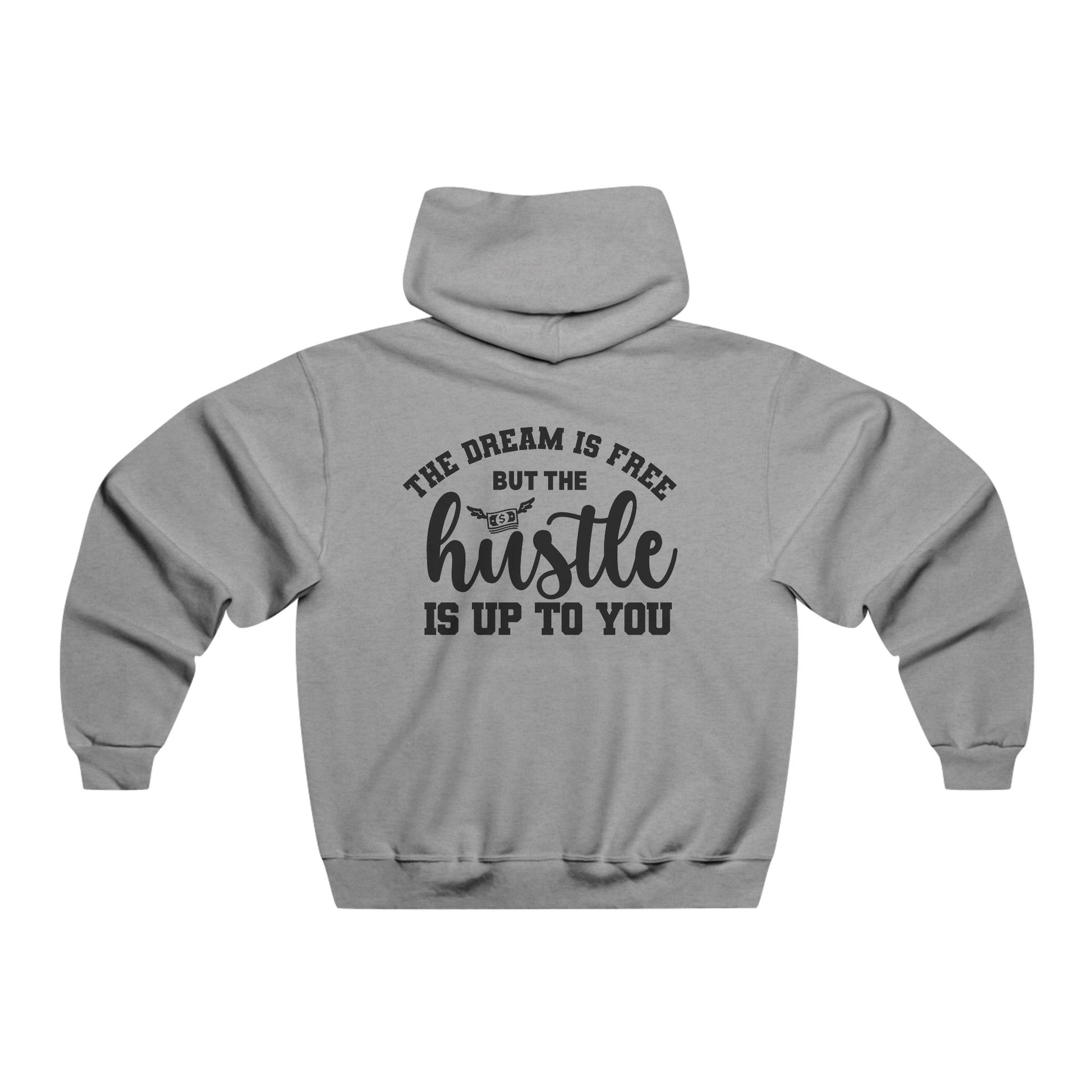 Embrace the grind with our "The Dream is Free but the Hustle is Up to You" hooded sweatshirt. This piece serves as a powerful reminder that while dreams set the direction, true achievement requires action. Made from a cozy, durable cotton blend, this hoodie is designed to keep you warm and comfortable as you pursue your goals, perfect for early mornings and late nights.