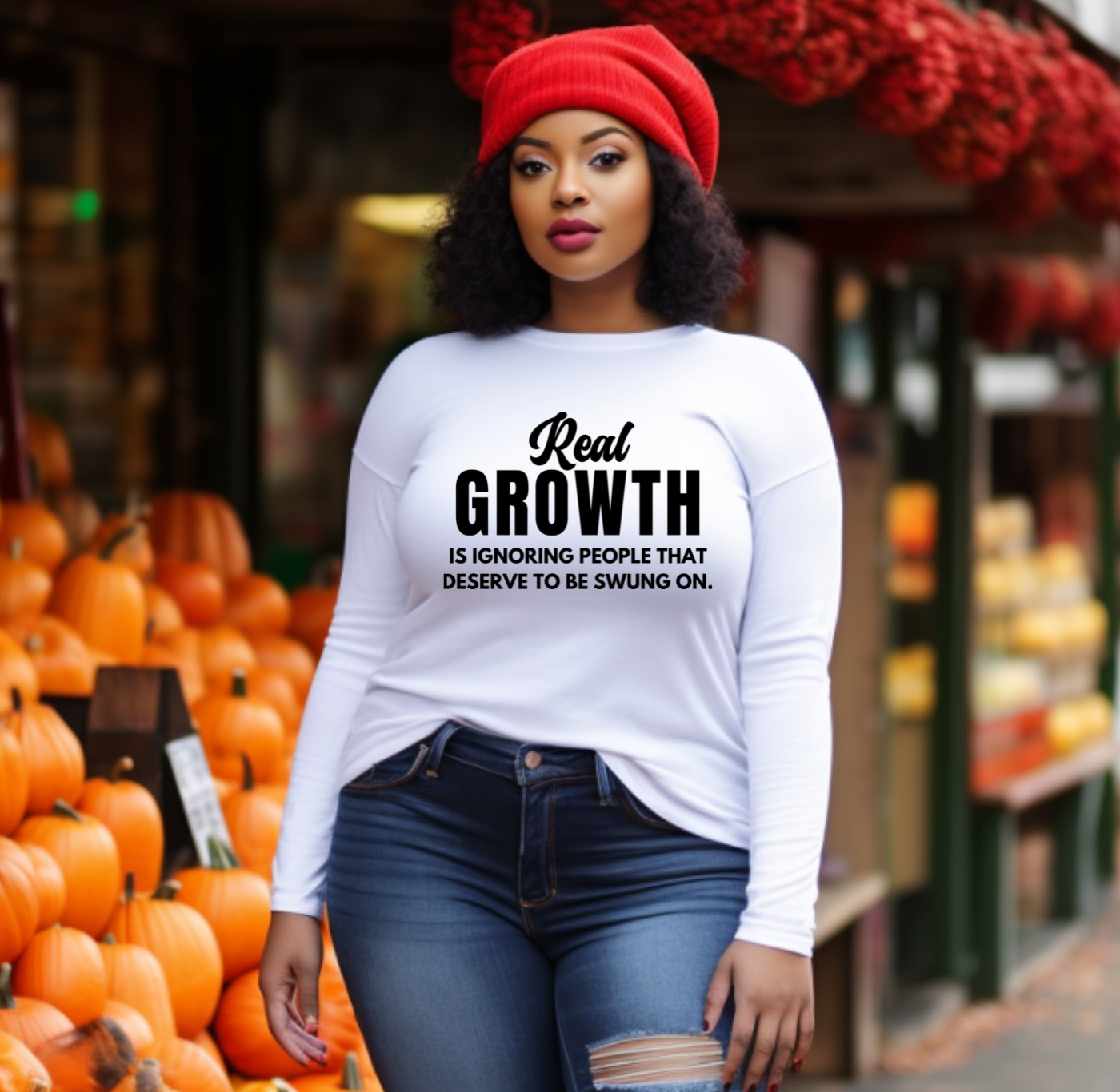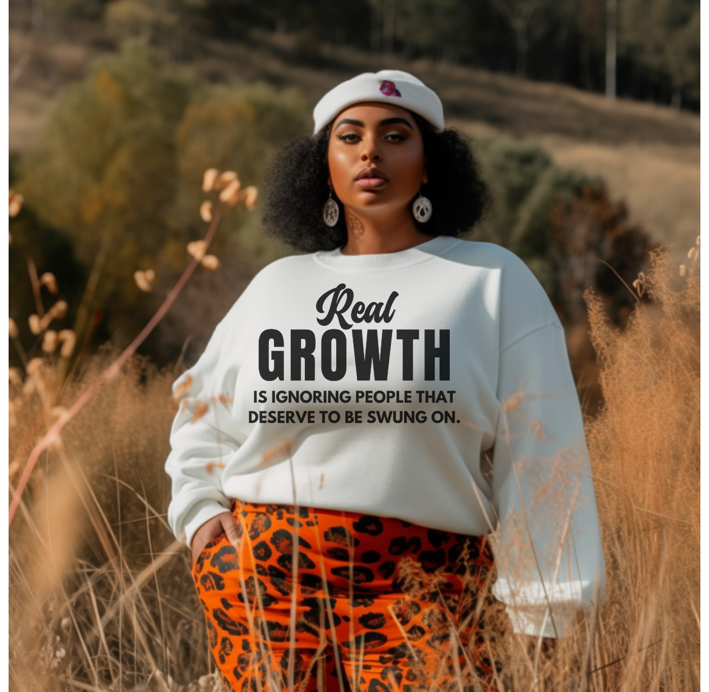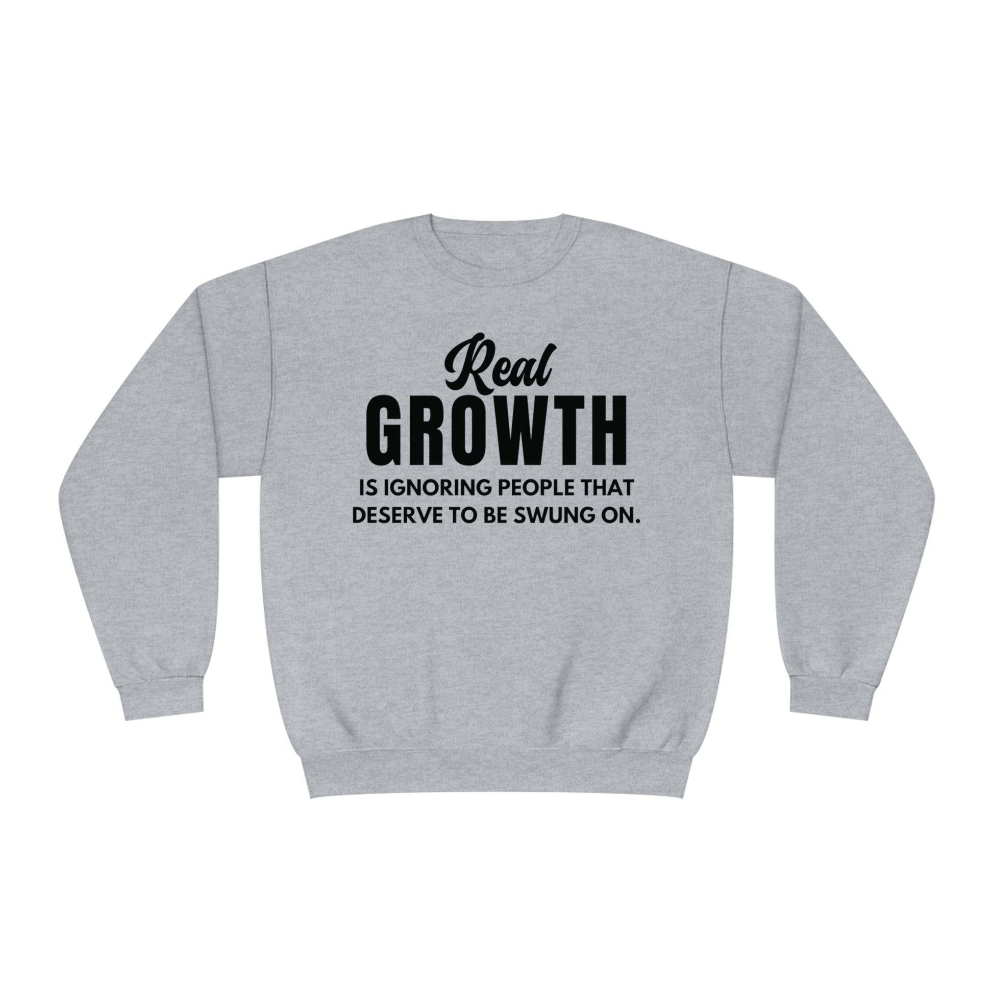 Embrace your journey with our "Real Growth is Ignoring People" sweatshirt. This powerful statement piece is for those who understand that personal development often requires tuning out the noise. Made from a soft, durable cotton blend, it provides both warmth and wisdom, making it a perfect choice for reflective moments or casual days out.