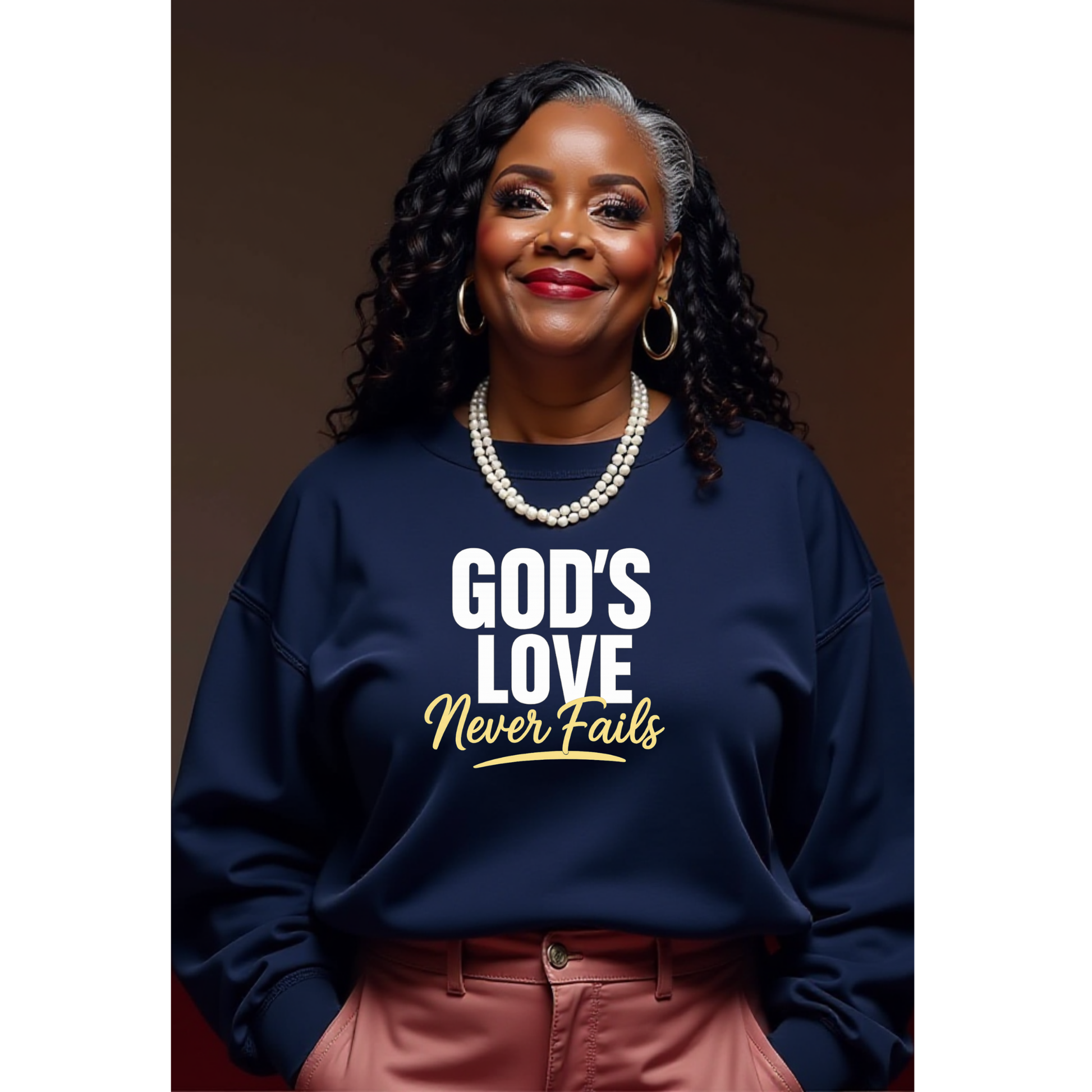 - God’s Love Never Fails – timeless truth with bold + script contrast